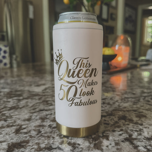 "This Queen Makes 50 Look Fabulous" Slim Can Cooler – 12oz