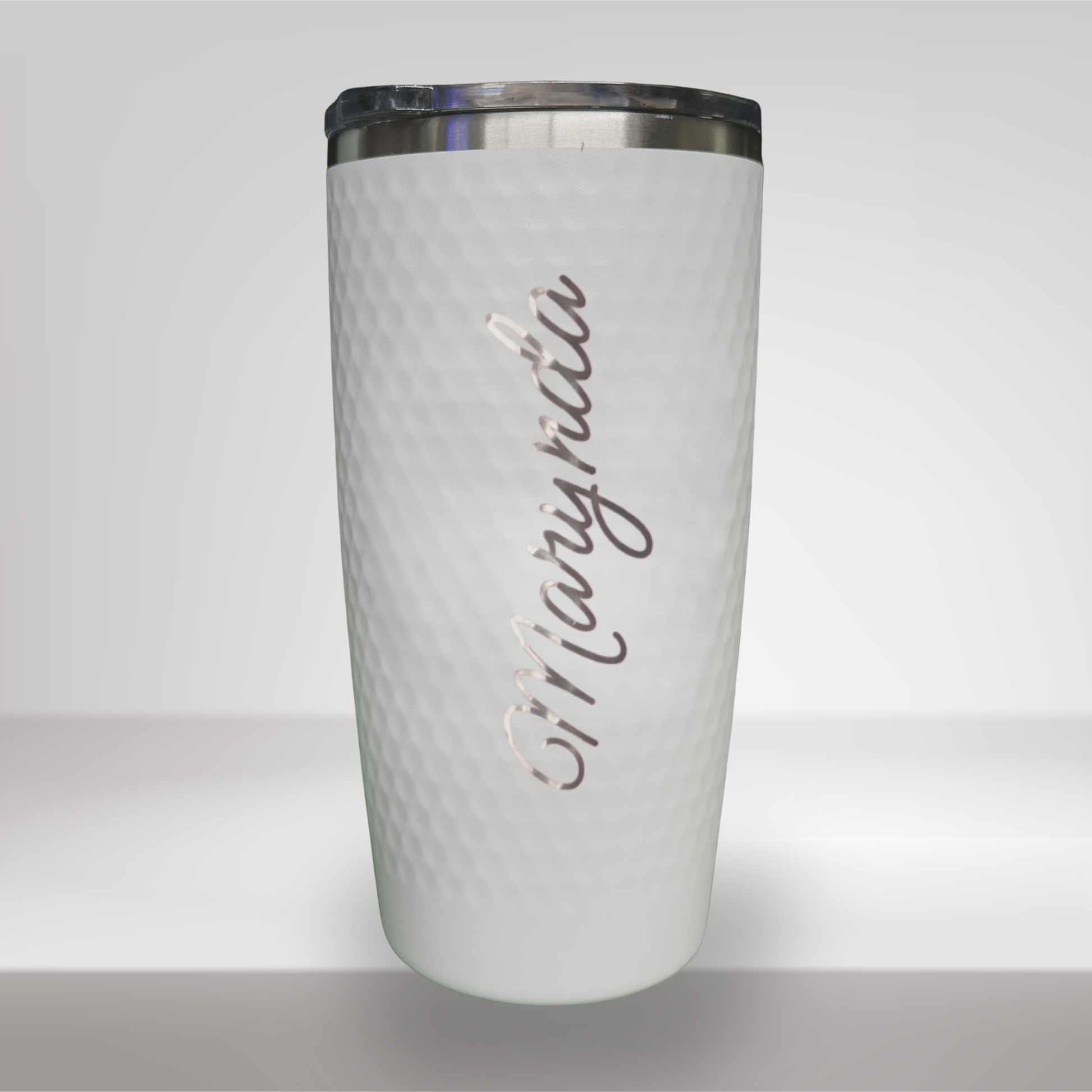 This 20 oz tumbler is designed to stand out—from the dimpled texture that mimics a golf ball to the clean, permanent engraving that won’t fade or peel.